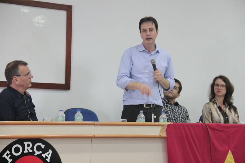 Presente ao encontro, o presidente do PT de Santa Catarina e pré-candidato do Governo do Estado de SC, Cláudio Vignatti, explanou soluções políticas para Santa Catarina e o papel importante dos dirigentes sindicais para os trabalhadores.