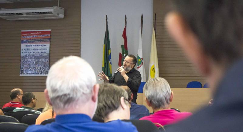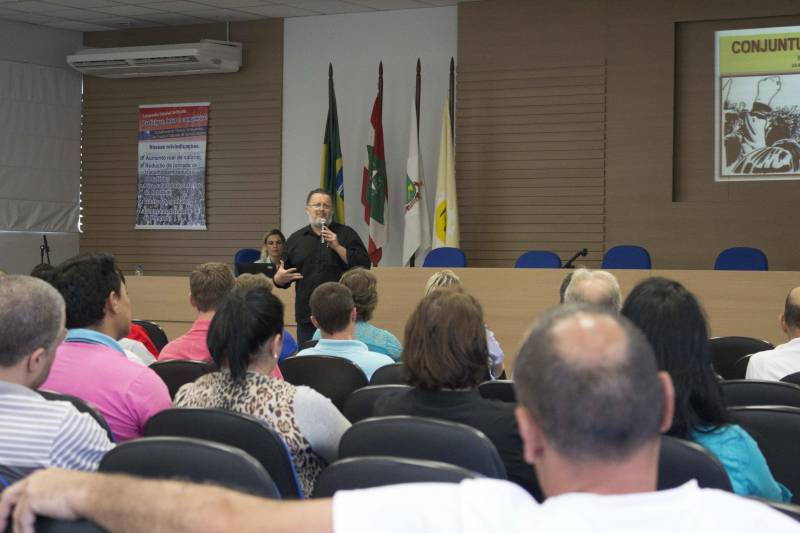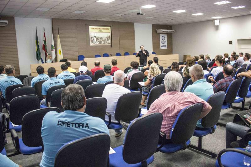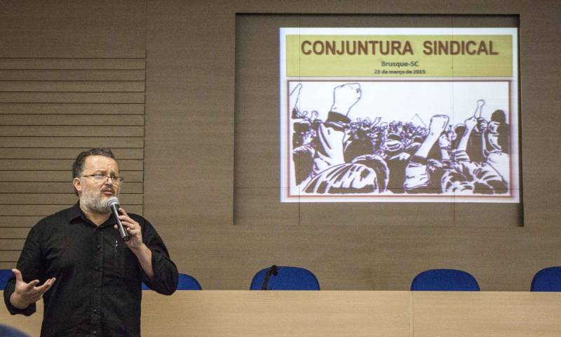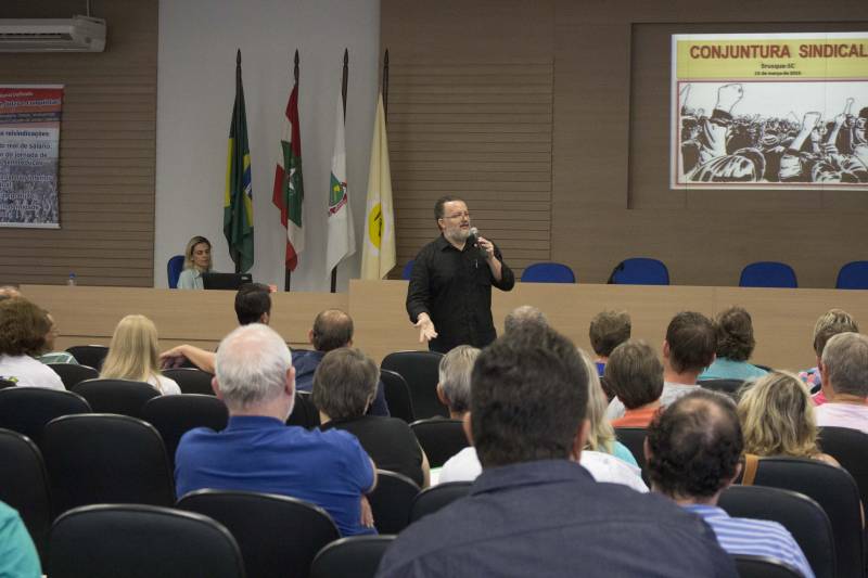 Foram três palestras durante o dia: a primeira, ministrada por José Álvaro Cardoso, membro o DIEESE (Departamento Intersindical de Estatística e Estudos Socioeconômicos), sob a temática: “Conjuntura Econômica do país na Atualidade”. A segunda palestra da manhã tratou das Medidas Provisórias (MP’s) adotadas pelo Governo Federal que retiram benefícios dos trabalhadores e quem falou sobre o assunto foi Matusalém dos Santos, do Fetiesc (Federação dos Trabalhadores nas Indústrias do Estado de Santa Catarina).