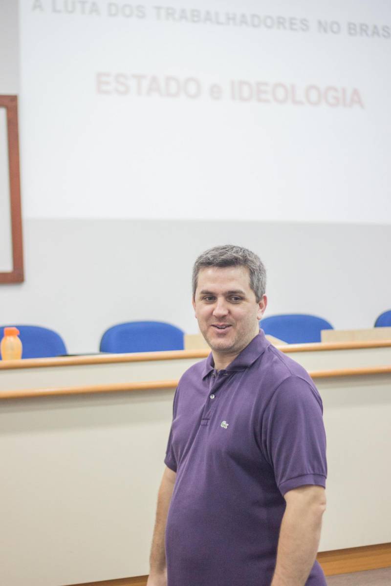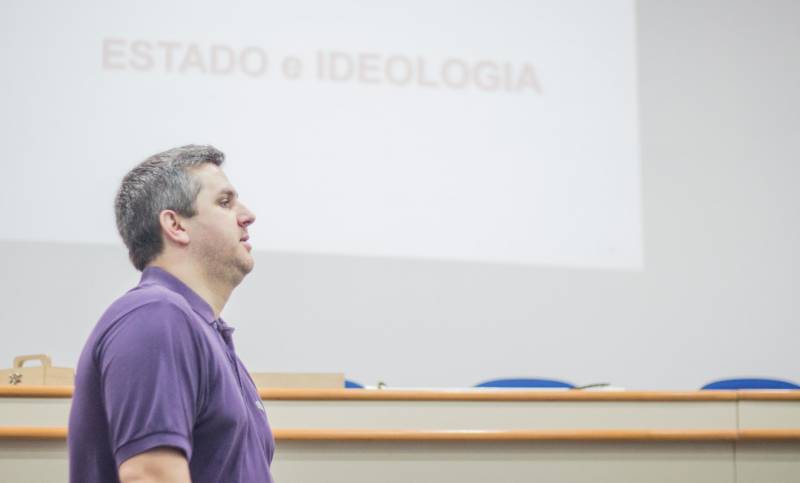 A temática do módulo três é intitulado “Estado e Ideologia”, que tratou sobre alguns conceitos de “Estado” e a forma como ele foi organizado no passado e nos dias atuais. “Estado não é o estado de Santa Catarina, esse ente federativo. É toda essa estrutura que existe, o modelo que foi criado lá na Revolução Francesa (entre 1789 e 1799). E é um modelo vigente hoje no país, a divisão entre três poderes. É, na verdade, um modelo que veio para sustentar os privilégios daqueles que estruturaram o período anterior. A regra do jogo foi construída pra quem já tinha a vitória na mão”, explicou Allan.