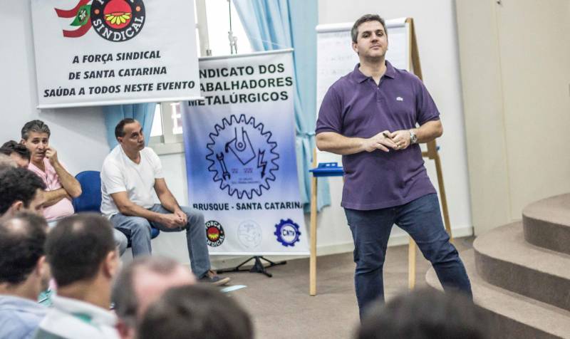 A diretoria do Sindicato dos Trabalhadores Metalúrgicos de Brusque (Sintimmmeb) participou nesta sexta-feira, 16 de outubro, no auditório da sede administrativa do sindicato, do 3º módulo do Curso de Formação para Gestores Sindicais, ministrado pelo professor e psicólogo Allan Rodrigo Alcantara.