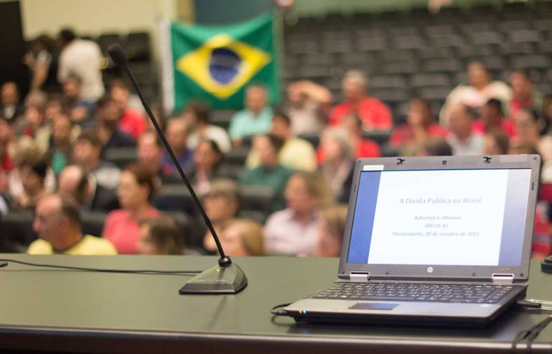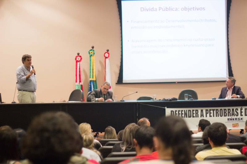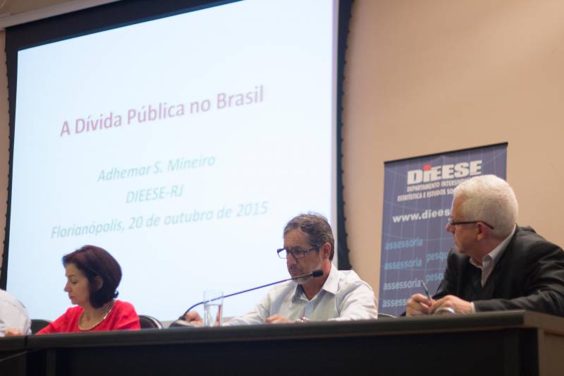Antes da solenidade, foi realizado no Auditório Deputada Antonieta de Barros, anexo ao plenário da Alesc, um debate sobre o tema: “A Dívida Pública no Brasil”, com economista Adhemar Mineiro, do DIEESE do Rio de Janeiro. Ele ressaltou a importância dos brasileiros se interessarem e entenderem a questão da Dívida Interna e Externa do país.