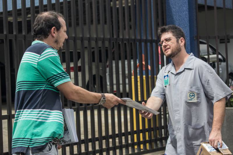 Diretores entregaram nesta quarta-feira, 30 de março, na empresa ZM, o Informativo do Sintimmmeb e a convocação para Assembleia Geral da Convenção Coletiva de Trabalho 2016/2017. A reunião será domingo, 3 de abril, às 9 horas, no auditório do Sindicato dos Trabalhadores Metalúrgicos.