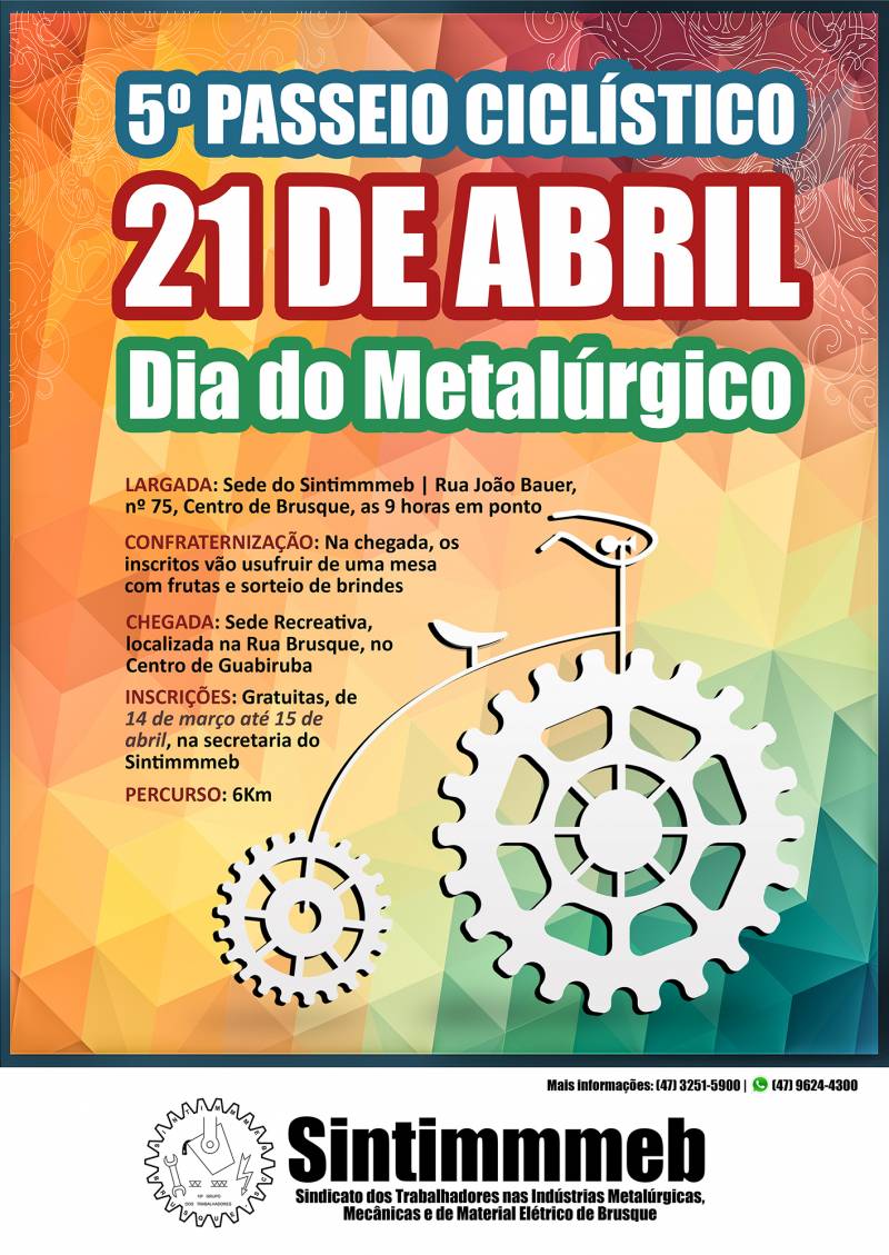 A data é em comemoração ao Dia do Metalúrgico e Tiradentes, mártir e herói brasileiro e patrono da categoria. Os amantes de uma boa pedalada poderão se dirigir até a sede administrativa do Sindicato dos Metalúrgicos, na rua João Bauer, nº 75, Centro de Brusque, para dar seus nomes.