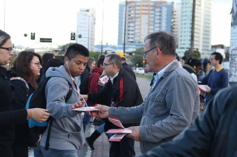 Na manhã desta quinta-feira, 11 de agosto, os diretores Jorge Luiz Putsch e Henrique Luiz Coelho Filho se juntaram a outras lideranças sindicais do Estado, ligados às Centrais Sindicais, para fazer a divulgação do evento no terminal rodoviário urbano de Florianópolis.