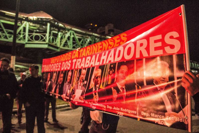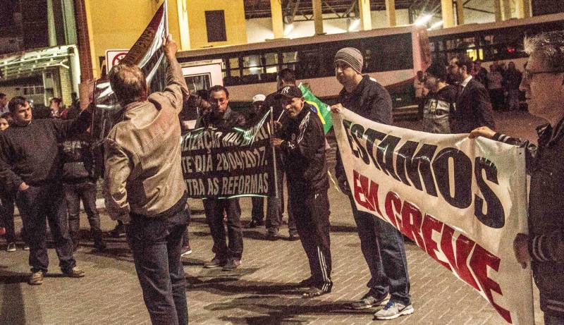 O Sindicato dos Trabalhadores Metalúrgicos de Brusque e os demais sindicatos que compõem o Fórum Sindical de Trabalhadores paralisaram, na madrugada desta sexta-feira, 28 de abril, a circulação de ônibus por aproximadamente uma hora. O intuito da manifestação pacífica é chamar a atenção da população contra a retirada de direitos garantidos por lei nas reformas trabalhista e da previdência.