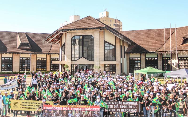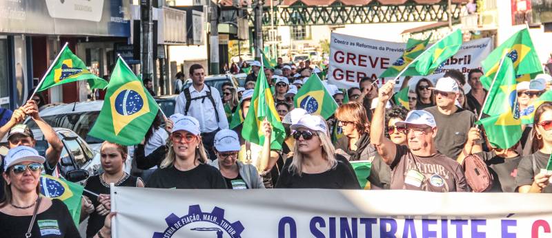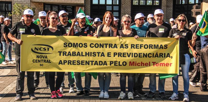 Trabalhadores tomam as ruas de Brusque contra as reformas trabalhista e da previdência