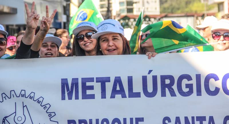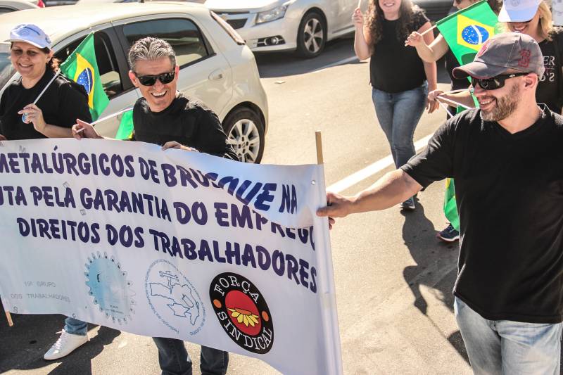 O Sindicato dos Trabalhadores Metalúrgicos de Brusque (Sintimmmeb) e os onze sindicatos que compõem o Fórum Sindical de Trabalhadores de Brusque realizaram nesta sexta-feira, 28 de abril, uma grande manifestação contra as reformas trabalhista e da previdência, proposta pelo Governo. O ato unificado fez parte de uma mobilização nacional, de paralisações e greves, realizadas em diversas capitais brasileiras e centenas de outras cidades.