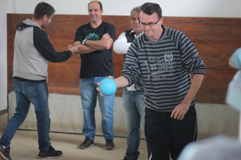 As canchas da sede recreativa do Sindicato dos Trabalhadores Metalúrgicos de Brusque (Sintimmmeb), em Guabiruba, recebeu neste domingo, 9 de julho, a rodada de abertura da 9ª edição do Campeonato de Bocha 2017. No total, 36 equipes estão inscritas. Nesta primeira fase são 12 grupos compostos por três equipes cada, onde os dois melhores avançam à fase seguinte, em sistema de todos contra todos.