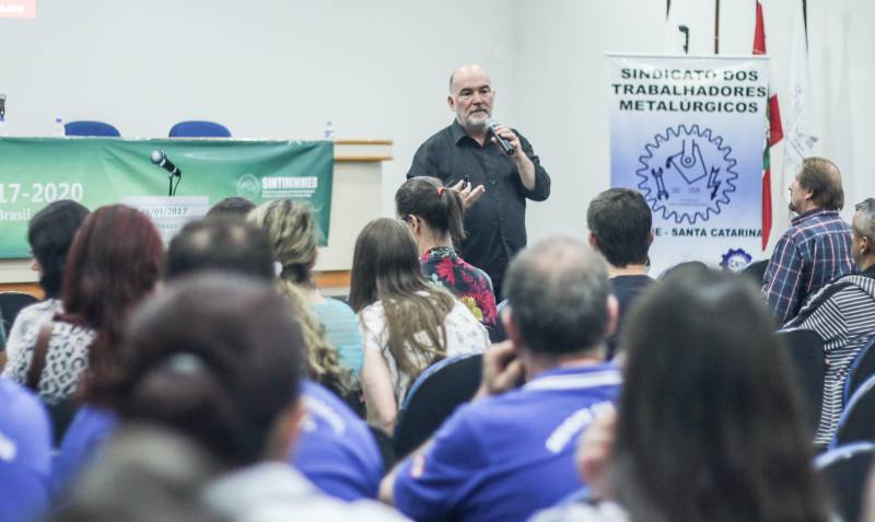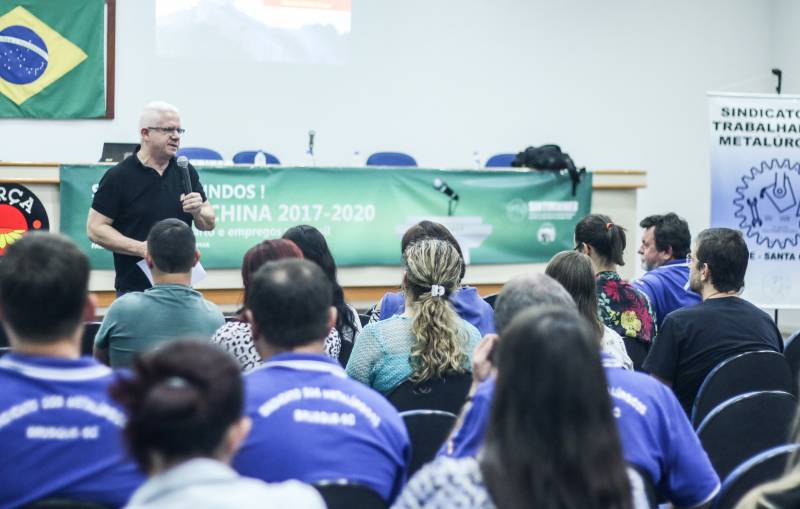 O Sindicato dos Trabalhadores Metalúrgicos de Brusque (Sintimmmeb) promoveu na noite desta terça-feira, no auditório da sede administrativa, o Seminário “China 2017-2020: impactos sobre salário e empregos no Brasil – cenário e ações possíveis”, ministrado pelo profissional de marketing, geógrafo e jornalista Vladimir Milton Pomar, especialista em economia da China. O evento foi aberto a toda comunidade. Pomar explicou como a entrada do mercado chinês no Brasil afeta os salários e o setor do emprego.