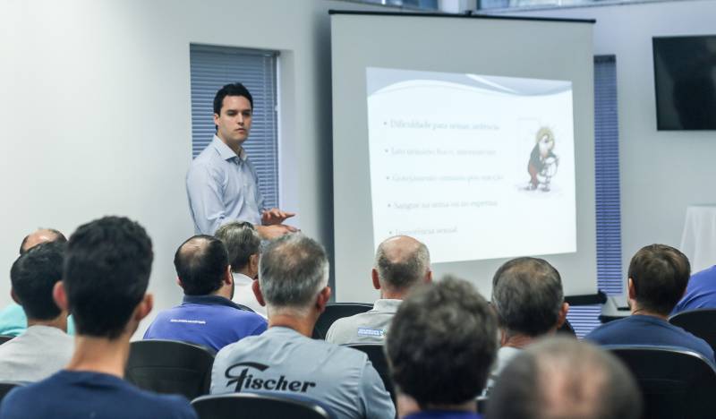 Os trabalhadores da empresa Irmãos Fischer S/A assistiram na manhã desta sexta-feira, 10 de novembro, na sede da empresa, a palestra do médico urologista Giovanni Favretto (CRM 15.897), sobre câncer de próstata. O encontro é parte das ações do Novembro Azul, mês de conscientização e prevenção da doença, promovida pelo plano de saúde dos Trabalhadores Metalúrgicos de Brusque e Região, a Sintimmmeb Saúde.