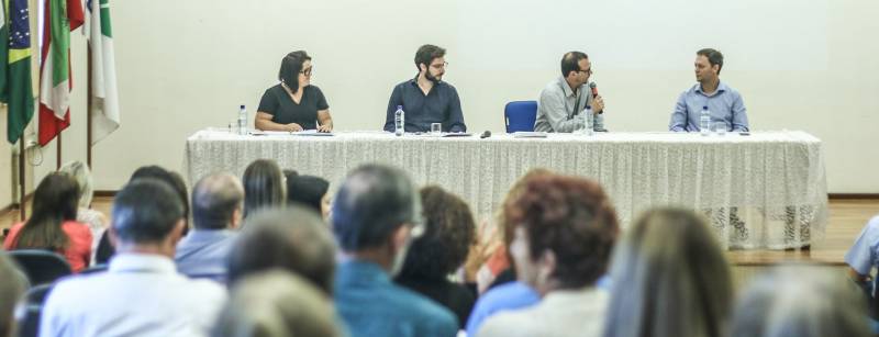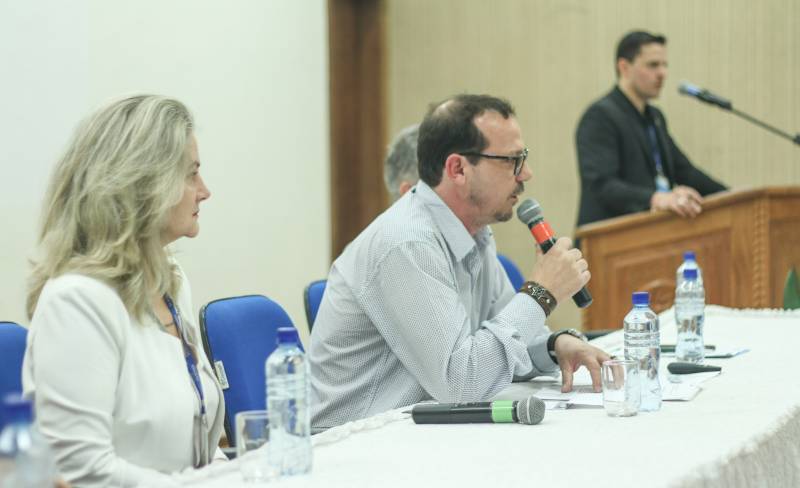 Após a palestra, as três bancadas que compõem o CETE fizeram uma explanação sobre o tema. Dos Empregadores, falou Rafael Tiago Patzlaff, representante técnico da Odeme Dental; dos trabalhadores Maurício Mulinari, do DIEESE-SC e do Governo, Mariah Terezinha Nascimento Pereira.
