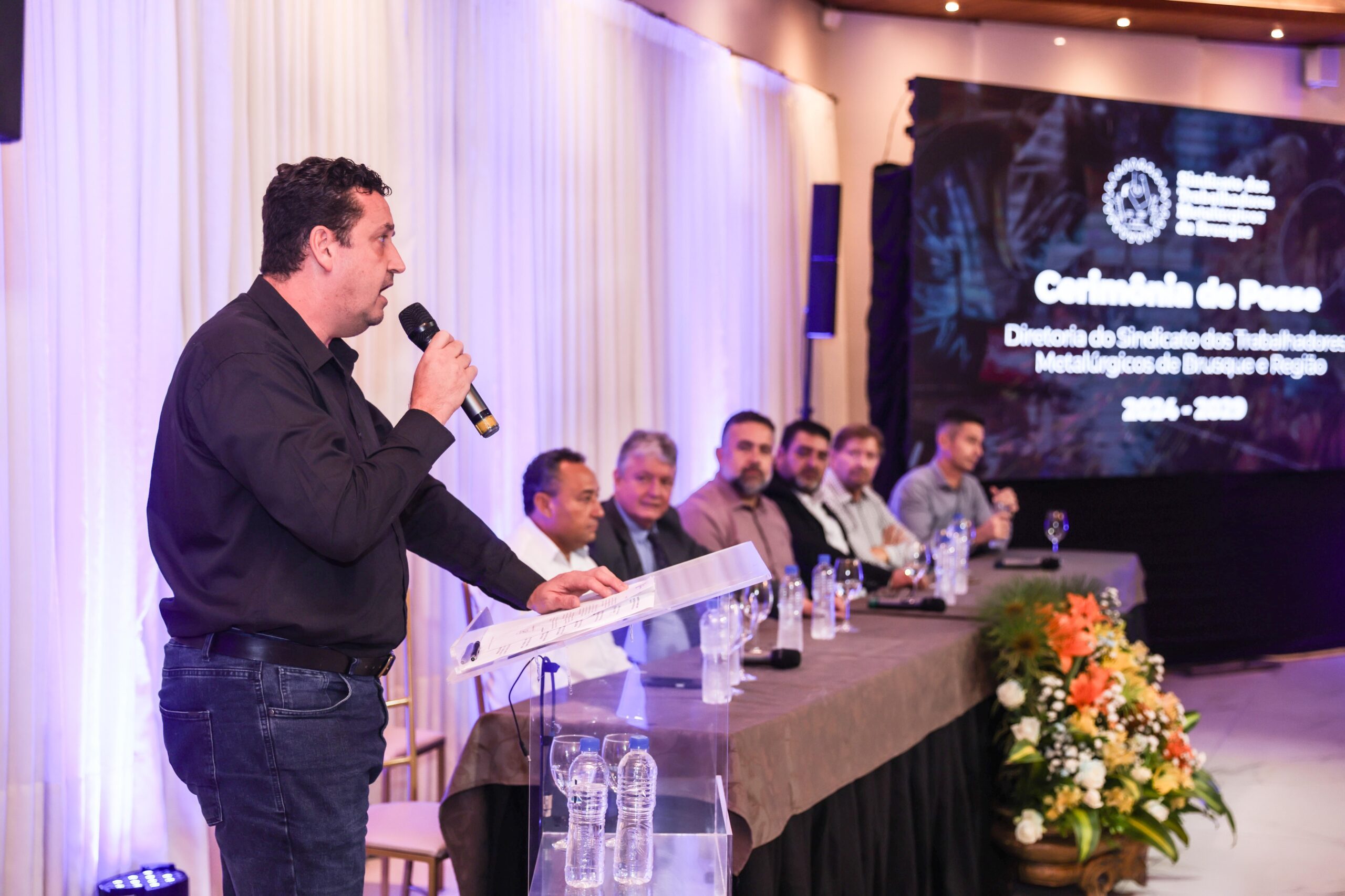 O Sindicato dos Trabalhadores Metalúrgicos de Brusque empossou oficialmente na noite desta terça-feira, 30 de abril, a diretoria eleita para o mandato que vai do dia 1º de maio de 2024 a 30 de abril de 2029, em cerimônia realizada na AABB, em Brusque. O evento reuniu todos os membros da nova diretoria, autoridades e convidados.